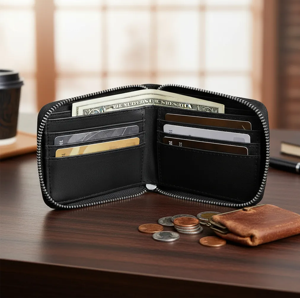 Capacidad: 6 ranuras + 2 bolsillos + 2 divisiones para billetes