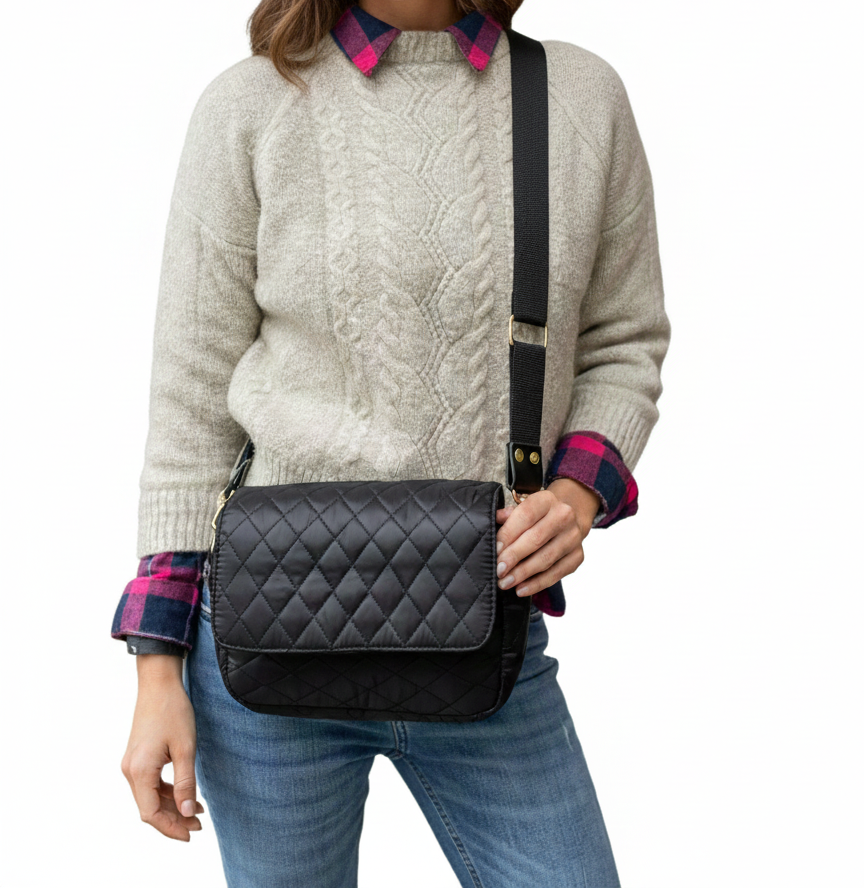 Cartera con solapa Con imán y cierre con deslizador con bolsillo interno. Correa regulable y extraible. super liviana.