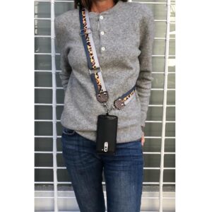 Correa con accesorio de aplique porta celular.
