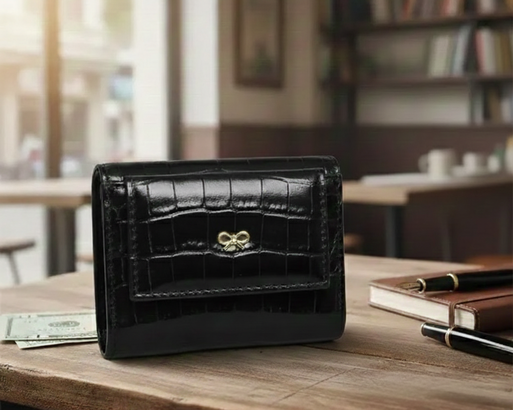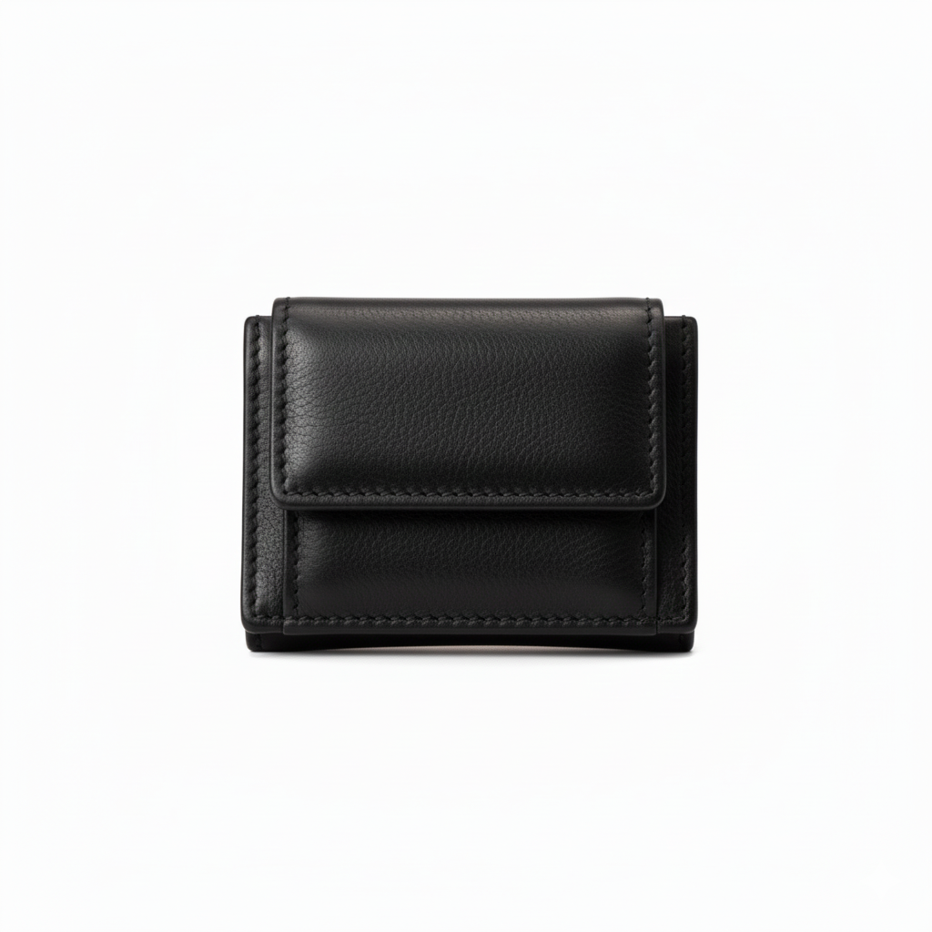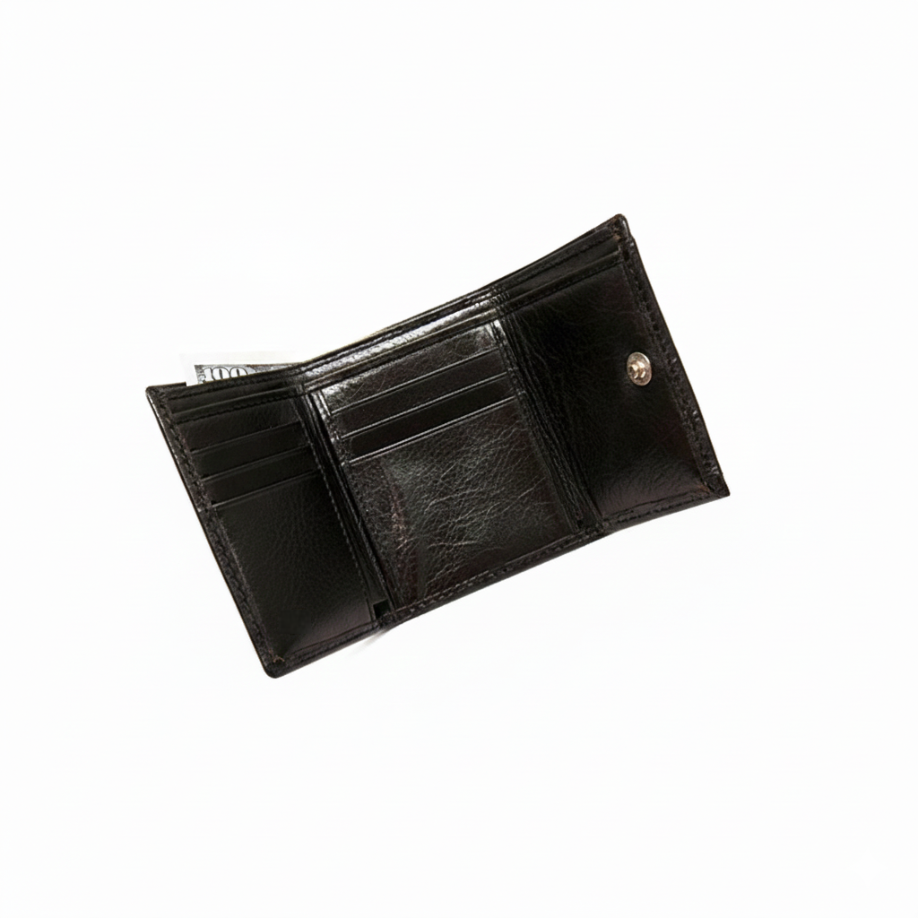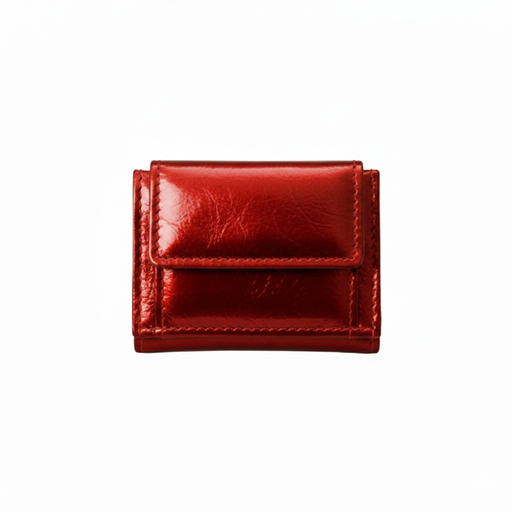 Mini billetera cuero vacuno porta monedas y billetes con broche.