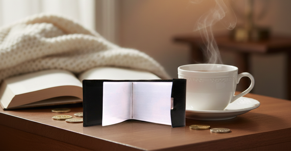 Tarjetero con folios, capacidad para 20 tarjetas, Un bolsillo y cierre con broche.