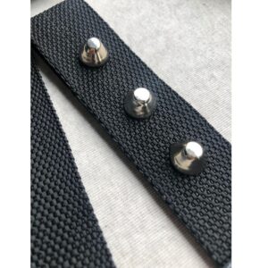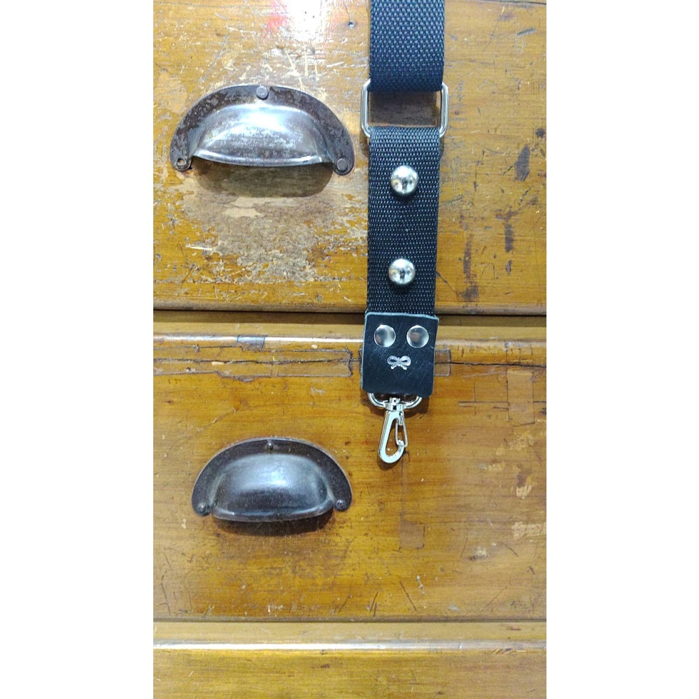 Correa porta celular con detalles en cuero. Lleva 2 tachas semi circulares.